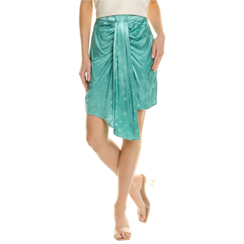 Introducing the Sabina Musayev Orca Mini Skirt in a stunning spearmint color. This pleated skirt features a drape accent for added style. With a center back zipper closure, this skirt is both fashionable and easy to wear. Made of 55% Viscose and 45% Rayon, this skirt is both comfortable and high quality. Hand wash and imported. Approximately 22 inches from waist to hem, this skirt is perfect for any occasion. The model is 5'9.5 and is wearing a size small. Please note that measurements may vary slightly by size. Add a pop of color to your wardrobe with the Sabina Musayev Orca Mini Skirt.