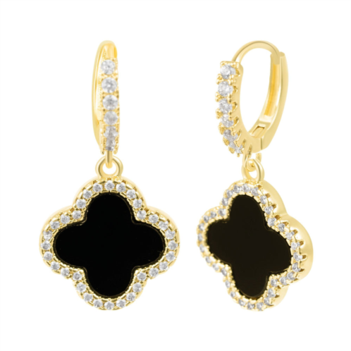 Adornia 14k gold plated crystal halo black clover dangle huggie earrings