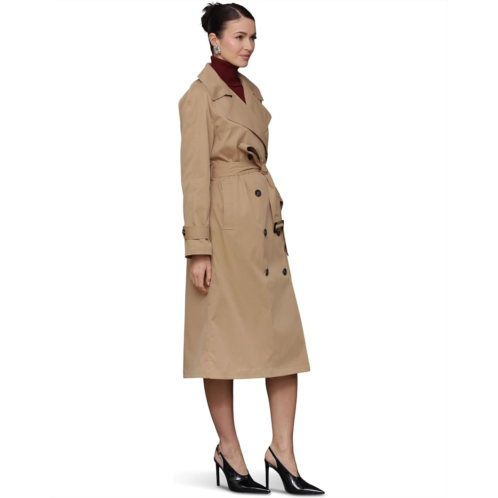- Top off your look and stay cozy in this Avec Les Filles Oversized Trench Coat. Unlined, all edges of the coat are merrowed. This double-breasted trench coat has a storm flap in the back, two handy side pockets, and a removable tie belt. It is styled with long sleeves, buttoned cuffs, a collared neckline, and a straight hem. The buttoned front closure ensures easy wear. This button-down trench coat makes a stylish addition to your wardrobe.