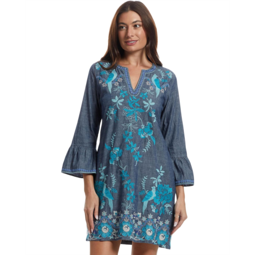 - Effortlessly chic, the Johnny Was Ruffle Sleeve Dress - Kikio blooms with vibrant teal embroidery and a flowing, relaxed fit. Made from cotton, this mini dress offers a perfect blend of comfort and style. Its flared elbow-length sleeves, a V-neckline, and a floral hemline add a touch of romance, making it perfect for sunny getaways or evenings out.
