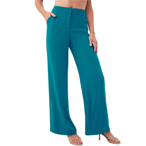 Introducing the Trina Turk Shashina Pant, a stylish addition to your casual wardrobe. These wide-leg pants in Turkana Teal feature a hook and zip front, side pockets, and a flattering inseam of approximately 32 inches. Made from 100% polyester, these pants are perfect for a relaxed yet polished look. Trina Turk is known for its contemporary and colorful designs, drawing inspiration from California's multicultural mix. Hand wash or dry clean these pants to keep them looking their best. Add a pop of color to your outfit with the Trina Turk Shashina Pant, made in the USA.