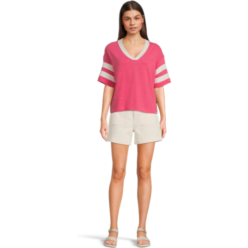 - With a nod to vintage sportswear details, the Faherty Sunwashed Slub Varsity Tee captures a refined, yet cool sensibility. Made with organic cotton jersey, it's incredibly soft and a highly versatile rendition of a timeless icon. This pullover tee is styled with short sleeves, a V-neckline, and a straight hem. The carefully considered color and engineered stripes honor the history of the rugby shirt and subtly encourage the collegiate spirit in all of us.