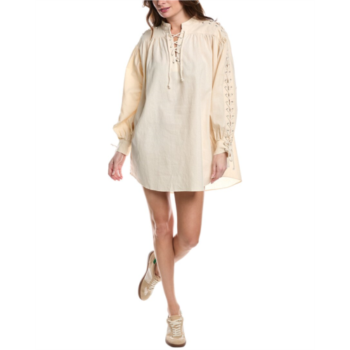Introducing the RE/DONE Pirate Linen-Blend Mini Dress, a must-have addition to your wardrobe for the upcoming season. This stunning dress is crafted from a luxurious blend of 55% linen and 45% cotton in a beautiful ivory color. The lace-up detailing adds a touch of bohemian charm, while the slip-on styling ensures effortless wear. Measuring approximately 34 inches from shoulder to hem, this mini dress is perfect for any occasion. The model is 5'9 and is wearing a size small, but please note that measurements may vary slightly by size. Easy to care for, this dress is machine washable and imported for quality assurance. Elevate your look with the RE/DONE Pirate Linen-Blend Mini Dress and stand out in style.