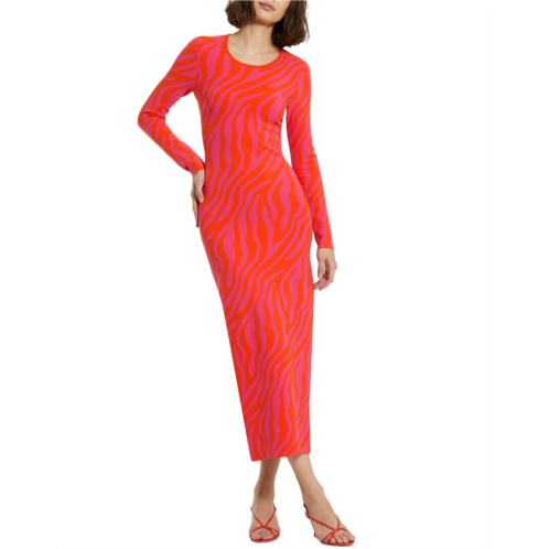 Introducing the Mac Duggal Knit Maxi Dress in Hot Pink Sunset, a stunning piece that is perfect for your next event. This fitted long sleeve zebra print dress is designed to turn heads with its vibrant color and bold pattern. The center back zipper adds a touch of elegance, while the lining ensures a comfortable fit. Made from 100% polyester, this dress is easy to care for - simply spot clean and lay flat to dry. Imported and approximately 52 inches from shoulder to hem, this dress is a must-have for any fashion-forward woman. Dress to impress with Mac Duggal.