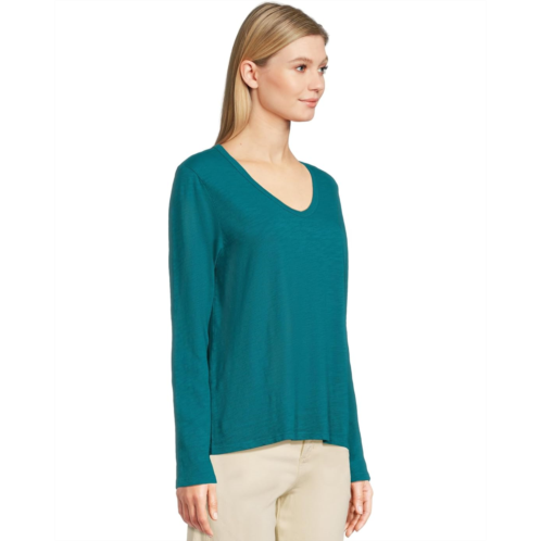 Womens Elliott Lauren Garment Dye Tees - Long Sleeve V-Neck Knit Top
