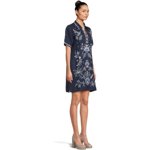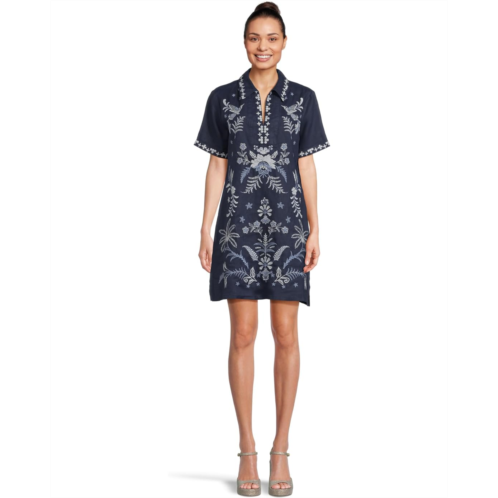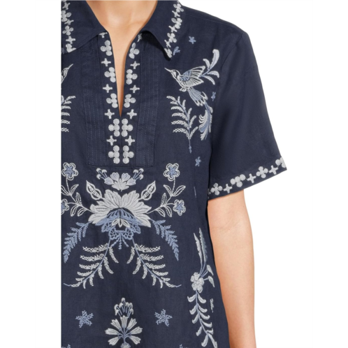 Womens Johnny Was Linen Henley Collared Dress - Winona