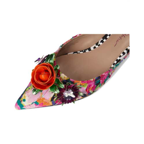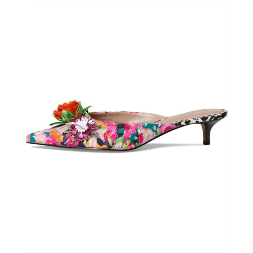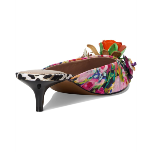 Perfect for every fashionista, the Blue by Betsey Johnson Abigayl pointed toe kitten heel is eye-catching and fun with its bold print and flower adornments. This slip-on footwear is designed with a polyester upper and polyurethane outsole.