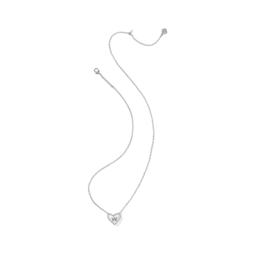 - Sentimental sparkle meets modern must-have in the Kendra Scott Heart Letter W Short Pendant Necklace. Crafted from rhodium-plated brass for lasting shine, this sweet heart-shaped charm draws inspiration from the iconic Ari silhouette, making it both timeless and trendy. Nestled within the prong setting, a luminous ivory mother-of-pearl inlay highlights the bold block 'W' for a personal touch that speaks volumes. Flip it for a sleek all-metal moment when you're feeling minimalist. Secured with a classic lobster clasp, this short pendant necklace is your new neck stack essential: sweet, stylish, and full of meaning.