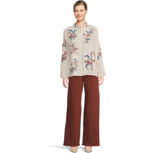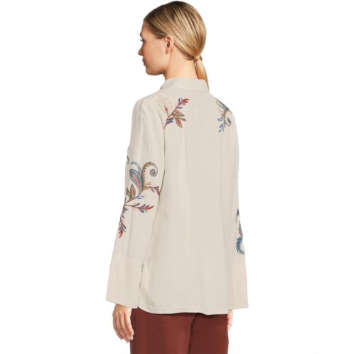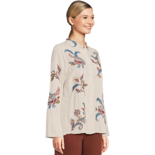 - Effortlessly chic and timelessly bold, the Johnny Was Vintage Button Down Shirt is your wardrobe's instant upgrade. Crafted from lightweight fabric that drapes with ease, this shirt blends everyday comfort with statement-making style. The collared neck and button-front closure lend a classic touch, while the long sleeves with split buttoned cuffs offer versatile wear, whether rolled up for a relaxed vibe or styled neatly for polish. What truly sets this piece apart is the vibrant embroidered detailing, an artful finish that transforms a staple into a showpiece. Covered buttons complete the design with an elevated, vintage-inspired charm, making it perfect for dressing up denim, layering over skirts, or pairing with tailored trousers.