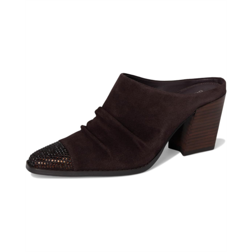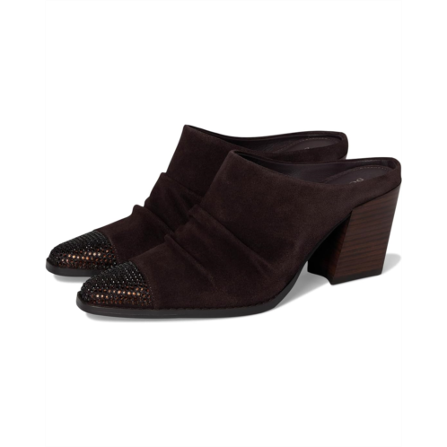Slip into luxe confidence wearing the Donald Pliner Westansp heeled mule. Crafted with a rich leather upper, smooth leather lining, and cushioned leather insole, it's made to impress from the inside out. The pull-on silhouette showcases refined ruching, blending relaxed sophistication with trend-forward design. A crystal-embellished toe welt brings the sparkle, instantly elevating your step with subtle glam. Finished with a stacked block heel and durable rubber outsole, this mule delivers stability, comfort, and style in one sleek package.
