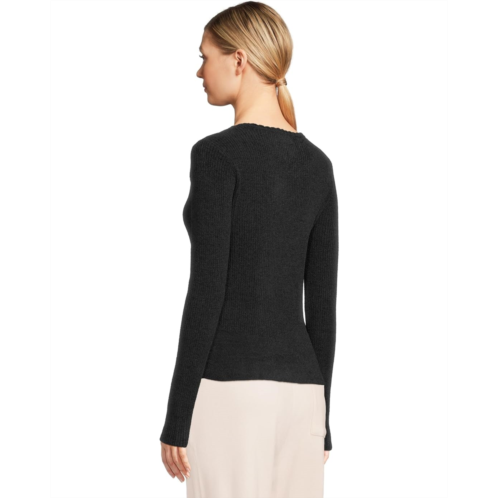 Womens Barefoot Dreams Cozychic Ultra Lite Ribbed Scallop Scoop Neck Top
