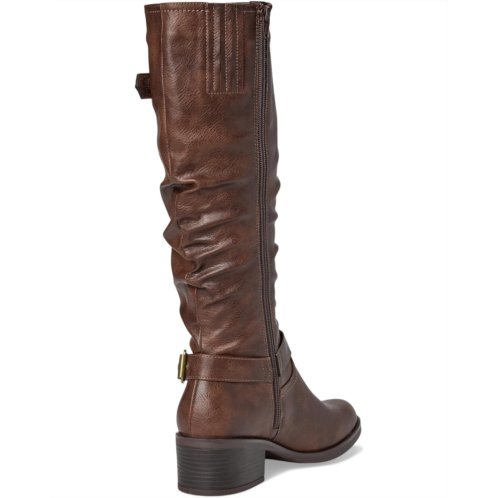 Saddle up for style and sophistication with the cushion tall shaft boot from White Mountain shoes. The western inspired harness buckle and strap give it a unique look to a classic riding boot. The top buckle isn't just for looks; it is adjustable to give you a wider shaft if needed.