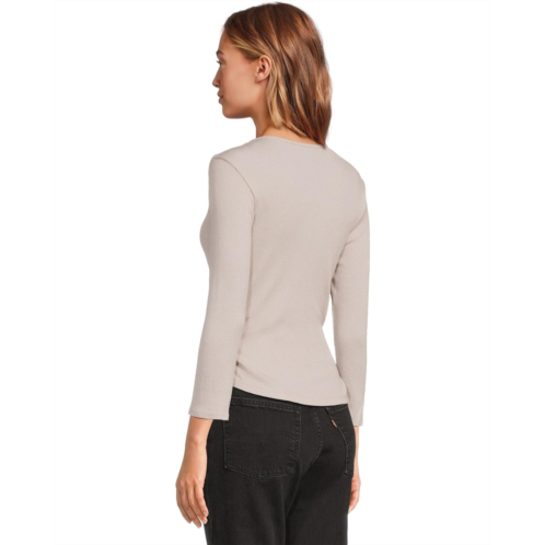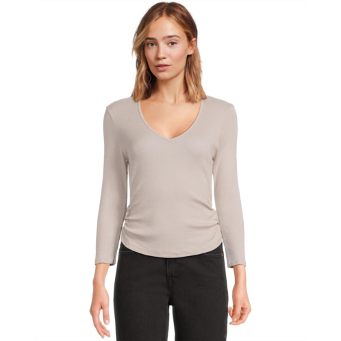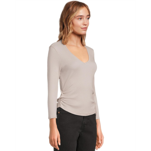 Womens Michael Stars Sylvie V-Neck Shirred Sides Tee