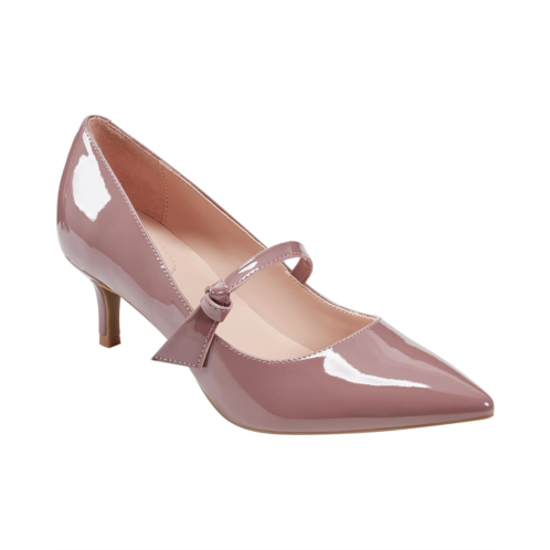 Knotted bow accent on the midway strap simply adds to the modern yet sleek design of Bandolino Medley Pumps. The pull-on footwear features polyurethane upper with kitten heel and low-top, pointed toe silhouette.