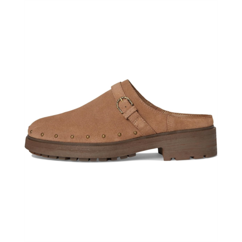Slide into retro-chic vibes styling the Lucky Brand Caytina. Crafted with a rich suede upper and grounded by a durable rubber outsole, this slip-on beauty keeps you effortlessly on the move, whether you're inside lounging or outside exploring. The block heel adds the perfect lift, while pin studs and buckle detailing bring an edgy, vintage-inspired flair. Faux leather lining and insole ensure all-day comfort, making it a wear-on-repeat essential.