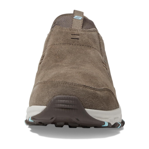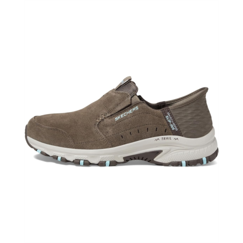 Blaze the trails in step-in and go convenience with SKECHERS Hillcrest - Sunapee Hands Free Slip-Ins. Along with the exclusive heel pillow, this water-repellent trail hiking style features a genuine suede upper with a skechers memory foam cushioned comfort insole. The round toe design and slip-on style allows an an easy fit