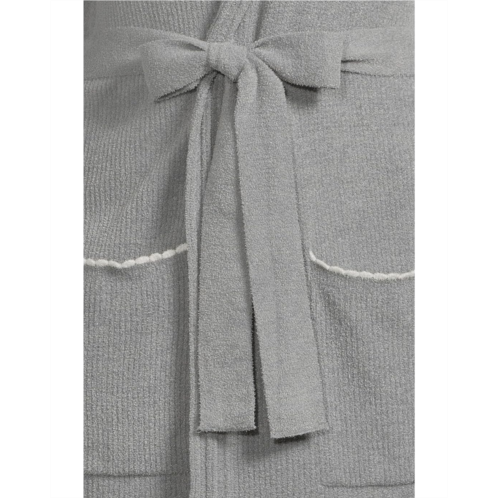 - Relaxed knee length robe with all over rib detail. A pointelle stitch detail along the collar and center front opening with contrast scallop at sleeve and front patch pockets.