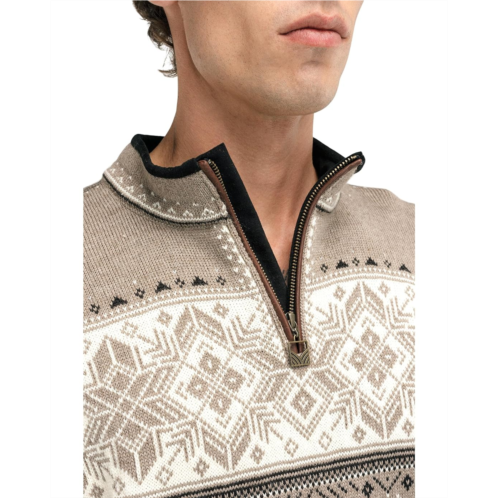 - NORWEGIAN DESIGN: Regular fit pullover sweater with quarter zip and elk leather trim along the zipper; Wool keeps warmth in & allows moisture to escape; 5 colors available