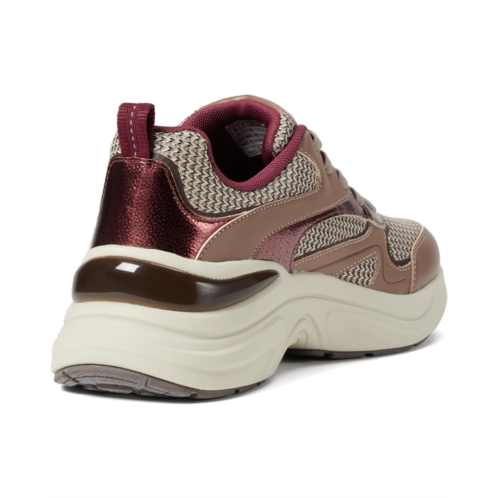 Add a sporty and casual touch to your look with the SKECHERS Hazel - Metallic Soiree SNeakers. Designed with a polyurethane upper, polyester lining, and Skechers Air-Cooled Memory Foam comfort insole, these sneakers are versatile and trendy. The round toe shoes come with a lace-up closure for a secure fit.