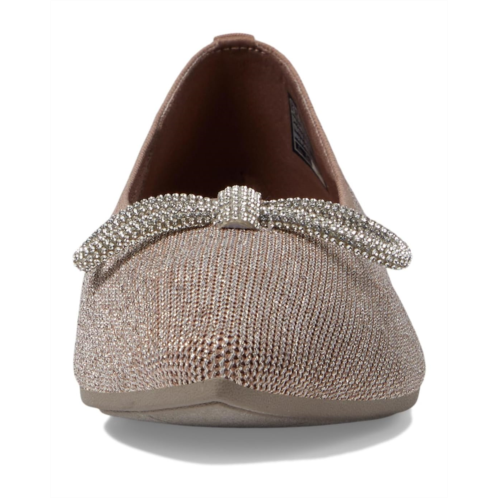 Match your party outfits and chic styles wearing the SKECHERS Cleo Point - Glitzy Haze shoes. These Stretch Fit skimmer shoes feature a metallic knit upper with a bow front for a stylish appeal and are crafted with 100% vegan materials. The cushioned Skechers Air-Cooled Memory Foam insole and faux suede lining provide added comfort and durability. Walk with style and confidence wearing these slip-on shoes.