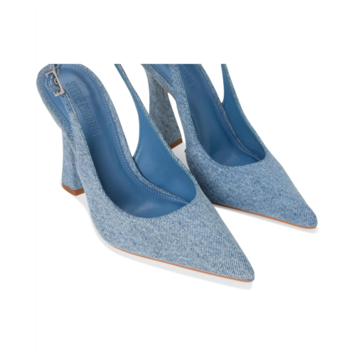 Introducing the Steve Madden Blare pumps, designed to amp up your looks and outfits. These heeled pumps are made of a canvas upper, nylon insole, and nylon lining. The slingback strap with an adjustable buckle closure ensures a secure fit. Chic and comfortable, these dress pumps make a great addition to your footwear collection.