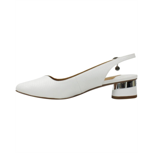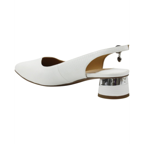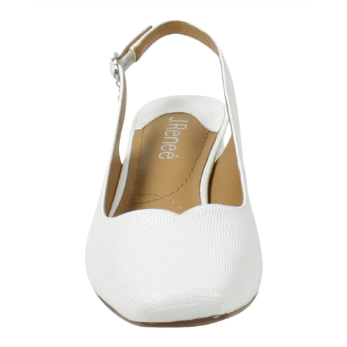 J. Renee Taveta sling-back feature a closed toe sling back kitten heel finished in lizard pattern. Available in two color options.