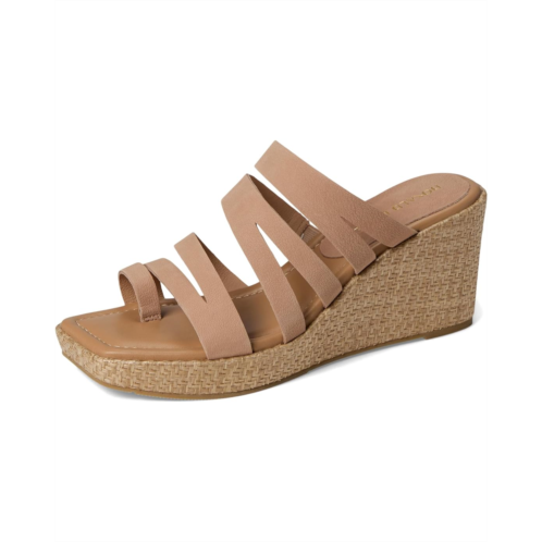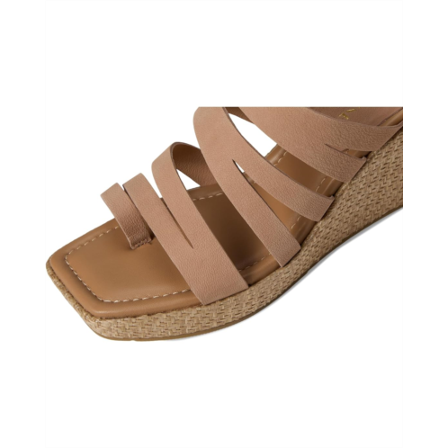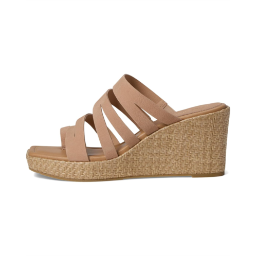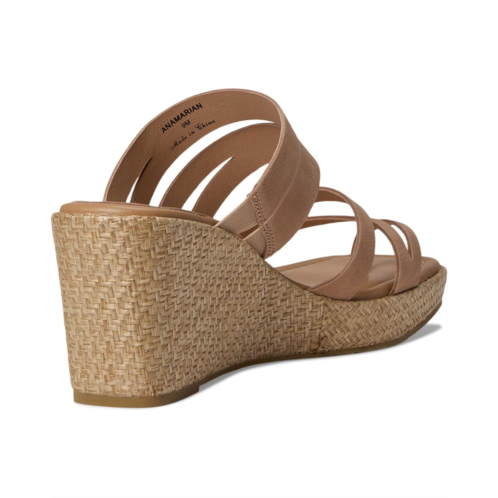 The Donald Pliner Anamari sandal gives you effortless height, featuring a brushed metallic Laser-cut, multi-strapped leather upper atop a tall wedge heel. These open round-toe sandals come with a leather lining. The leather insole with memory foam sock lining and stretch gores adds extra comfort to this slip-on style, while a toe ring and a rubber outsole keep it stable.