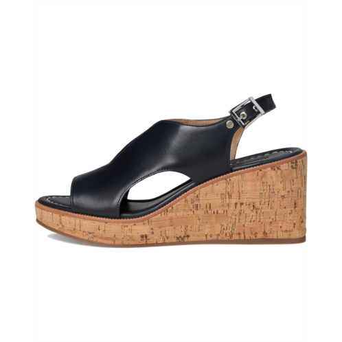 Raise your standards. The Bernardo Kuarta slingback wedge sandal reconsiders the essentials by uniting a signature, sculptural Bernardo upper with an elevated wedge heel that delivers both drama and comfort. Crafted from leather upper, lining, and cork insole, this pair of sandals features open round toe, buckle closure, and brand detailing on the footbed.