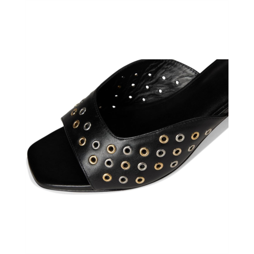 Be bold. This open-toe Bernardo Cenza Grommet mule with structural clean lines combined with the edginess of all over grommets makes for a powerful statement. Wear her on a date night or out with the girls. Crafted from leather upper, lining, and insole, this pair of sandals features open square toe, block heel, and brand detailing on the footbed.