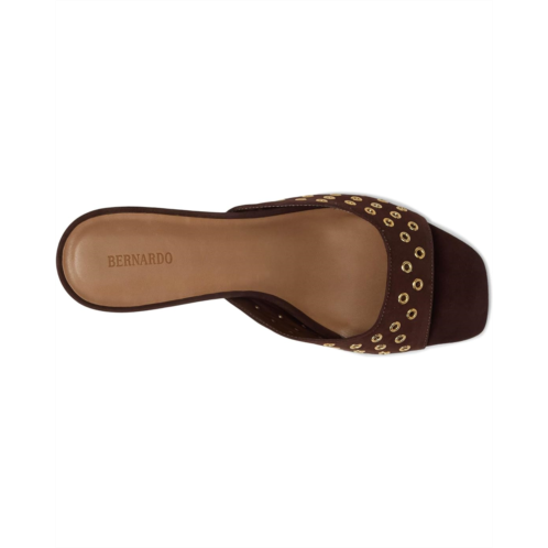 Be bold. This open-toe Bernardo Cenza Grommet mule with structural clean lines combined with the edginess of all over grommets makes for a powerful statement. Wear her on a date night or out with the girls. Crafted from leather upper, lining, and insole, this pair of sandals features open square toe, block heel, and brand detailing on the footbed.