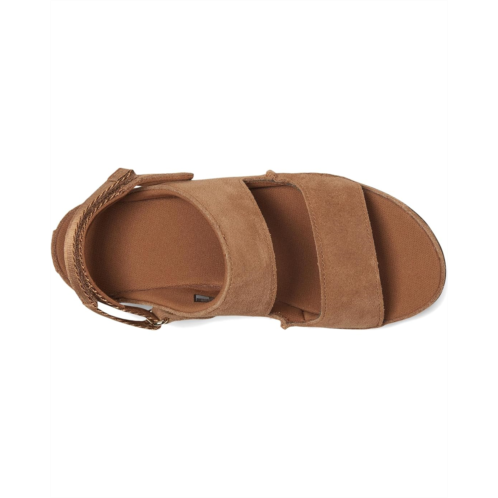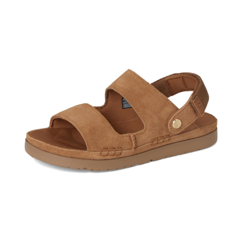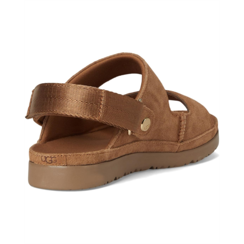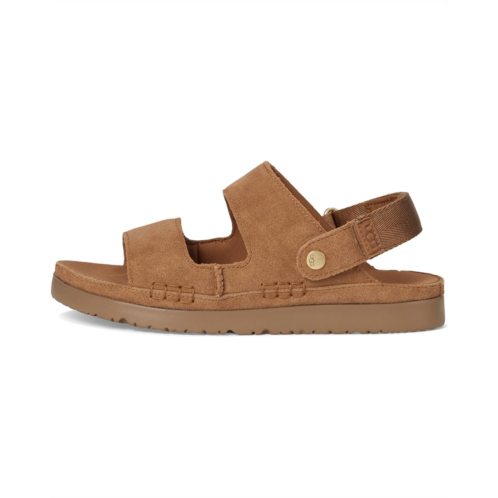 Slide into sunshine-one step, two ways! The UGG Kids Goldenstar Glide is the ultimate go-anywhere sandal, designed for comfort, convenience, and all-day play. Featuring an adjustable heel strap that flips forward for effortless slide-on wear, this convertible essential keeps up with their every move. The plush recycled polyester lining and contoured EVA footbed offer a cozy, odor-free touch, while the lightweight sugarcane EVA outsole ensures flexible traction. Topped with a soft suede upper for that signature UGG feel, it's a must-have for warm-weather adventures. Plus, matching big kid styles let you twin with your little explorer in style!