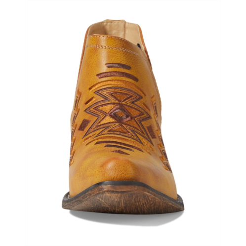 - Add resilience to your untamed fashion-spirited soul wearing the ankle-high Roper Ava Aztec Western Boots. This pull-on footwear features burnished faux leather upper construction with Aztec embroidery on the vamp and stacked block heels.
