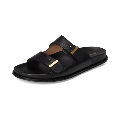 The Cole Haan Marisol Footbed Sandals. The two band slide sandals feature adjustable straps with metal stud and buckle to achieve an elevated upper. The dual density molded footbed which provides comfort, durability and cushioning. The leather-lined slip-on slide sandals feature an extended welt with welt stitch, rubber molded outsole with modern weave for lightweight feel and added grip, traction, and flexibility.