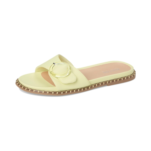 The Kenneth Cole Reaction Syrena is a comfortable flat sandal with buckle detail and added footbed-like cushioning. This slip-on footwear is designed with a faux leather upper strap and a stylish buckle.