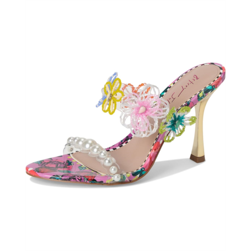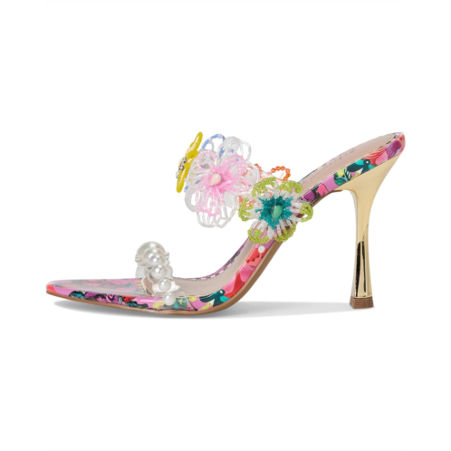 Perfect for any fashionista, the Blue by Betsey Johnson Goldiee is sweet and girly, with its bright print and flower embellishment. The stiletto mule heels feature faux leather upper adorned with pearls and beaded flowers, faux leather lining, and insole.