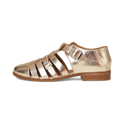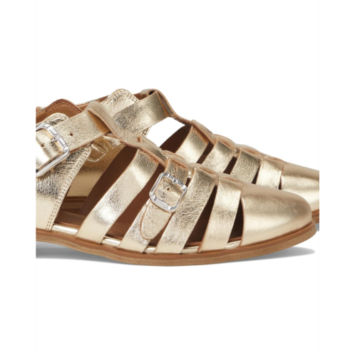 Revamp your basic looks by complementing outfits with the Miz Mooz Ivanna Sandals in a stylish low-top fisherman silhouette. The modern almond toe sandals come with a metallic leather upper with two trendy buckles, a leather lining, and a cushioned ethylene vinyl acetate insole.