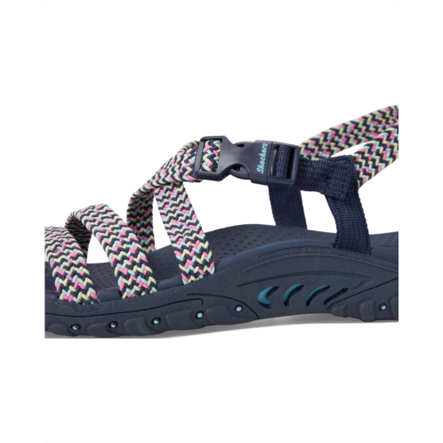 Explore the great outdoors in boundless comfort wearing the SKECHERS Reggae - Adore You shoes. These trail sandals feature a multi-color woven strap leather upper with quick-release buckle closure. These slide sandals are made of an EVA insole, lightweight and flexible shock-absorbing Reggae midsole, and leather lining. Machine washable and comfortable, these leather sandals are crafted with 100% vegan materials.