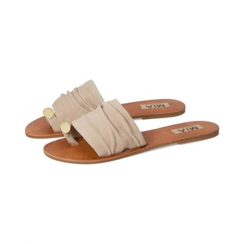 Liven up your laidback look in the MIA MLE-Tiffani sandal. Featuring a genuine suede strap, flexible faux leather lining, nail head details, and a toe ring accent for a touch of glam.