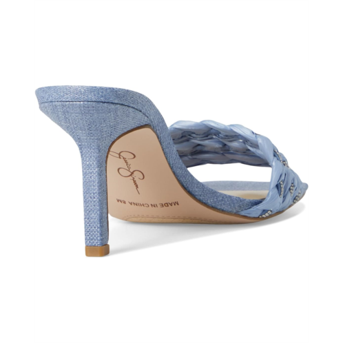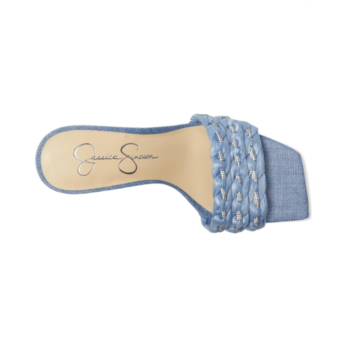 The Kasova Braided Heeled Sandals from Jessica Simpson have braided raffia straps with crystal embellishments on a mid-heel slide construction. It's definitely all in the details. The sandals feature denim upper, polyester lining, and insole.