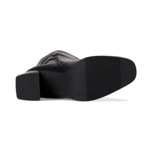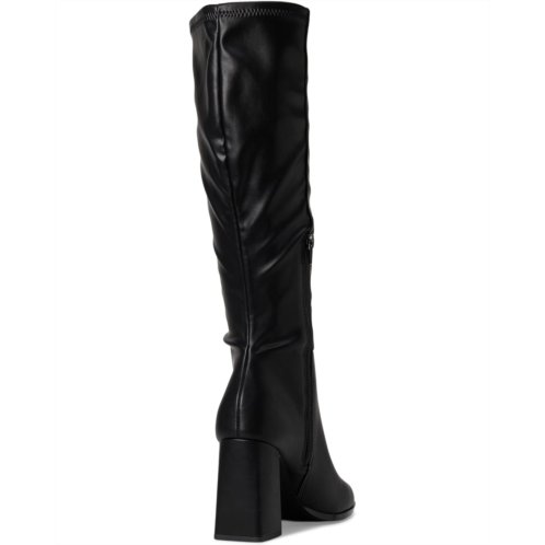 - Stretching into sleek shape, Madden Girl's Katiee square-toe boots stride atop smart block heels. Featuring a faux leather upper, side zipper closure, polyurethane lining and insole, and a knee high length.