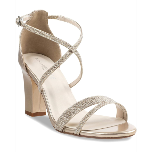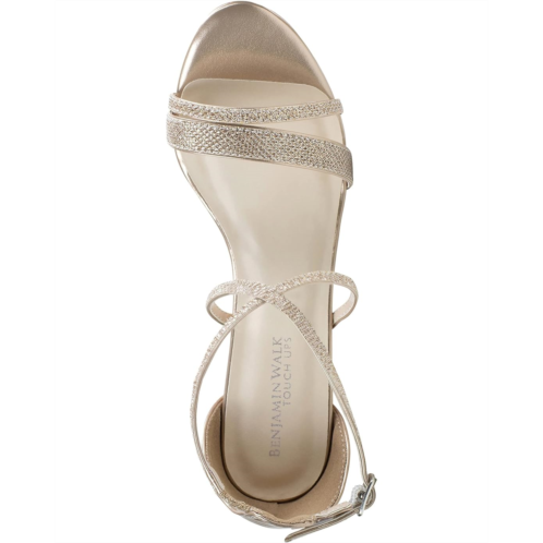 - Asymmetrical straps with glistening details.