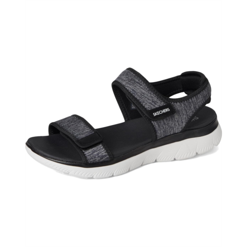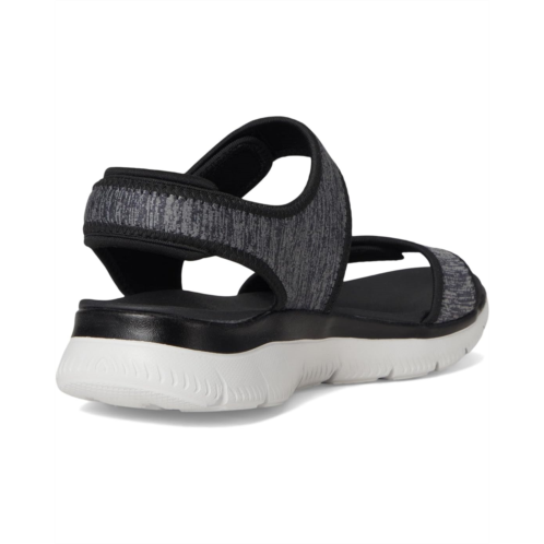 The SKECHERS Summits - Cutest Icon are ready for anything, from errands to explorations. This trendy sandal combines laid-back beach vibes with modern flair, featuring a leather upper and lining for a sleek, elevated look. Designed with a Yoga Foam cushioned footbed, it offers cloud-like comfort with every step. The flexible traction rubber outsole ensures stable footing, while the hook-and-loop closure and adjustable double strap slingback provide a custom, secure fit. Open-toe design lets your feet breathe, making it perfect for sunny days. Crafted with vegan materials, it's the eco-friendly choice for fashion-forward comfort.