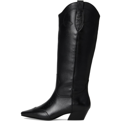 Strut the streets with style and confidence wearing the Steve Madden Dollie Boots. Boasting a unique fusion of the classic cowboy style and contemporary design elements, these versatile, knee-high boots are made with a suede upper, a synthetic rubber lining, and a padded rubber insole. The intricate embroidery work on the upper enhances the elegance of these boots while the slanted block heel makes them more modern.