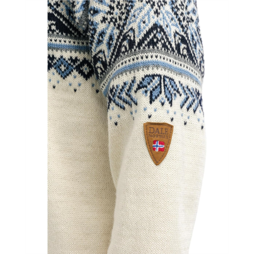 - Embrace cozy and comfy vibes as you layer up the Dale of Norway Vail Sweater. Crafted with a long-lasting wool & premium knit quality for maximum comfort, softness, & strength, this warm & breathable woolen men's sweater is ideal for skiing or apres-ski. The wool keeps you warm and allows moisture to escape. It features a regular fit, a medium-high neckline where the stand collar is lined with fleece for comfort, a quarter-zip closure, long sleeves, and a straight hem. The top is beautifully detailed with an 8-petal rose pattern and decorative winter elements.