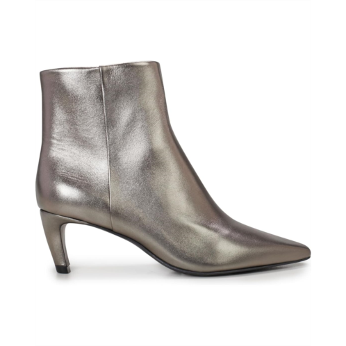 Crafted from luxe leather upper, the Vince Camuto Quinley boasts a chic snake print or matte metallic finish. Featuring a pointed toe, padded footbed, and trendy comma stiletto heel, this ankle-high bootie with a side zippered closure effortlessly transitions from denim to dresses, ensuring comfort and flair with every step.