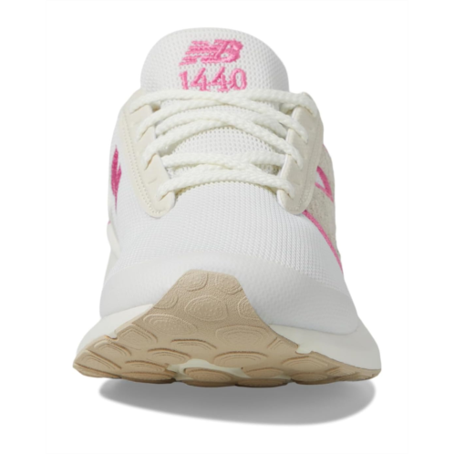 Comfort meets confidence, own your look styling the New Balance Kids 1440v1 features a breathable mesh upper and soft cotton lining for all-day comfort. The EVA insole and durable rubber outsole provide superior cushioning and traction. With both lace-up and gore band closures, along with a bold TPU heel clip for standout style, these sneakers are designed for easy, secure wear and endless adventures.