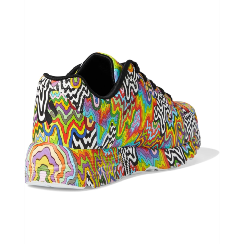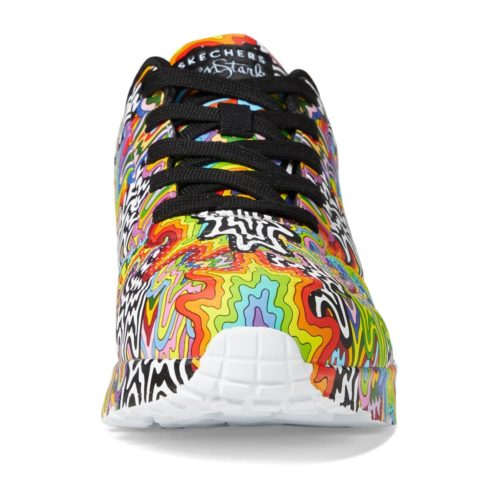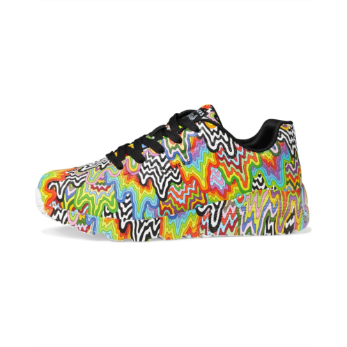Let your kiddo draw all the attention wearing the super vibrant SKECHERS KIDS Uno Lite 310385L Sneakers. The colorful footwear has faux leather upper embossed with jewel tone and Jen Stark multi-drip printed design that offers an appealing look.