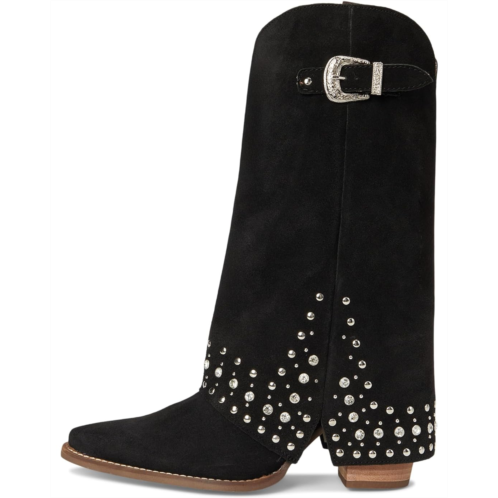 - Sweet with a side of bold. The Dingo Howdy boots bring full-glam energy with head-to-toe rhinestones, a chic cuff detail, and a statement buckle that pulls it all together. These heeled boots are made of a suede upper, cushion comfort foam insole, and polyester lining. They are the kind of boots that don't whisper - they shine. The buckle side closure offers a secure fit. Whether you're dressing up or keeping it casual, these calf-high boots add instant attitude and sparkle.