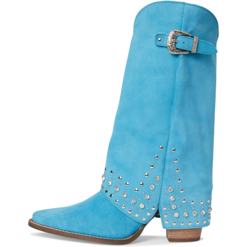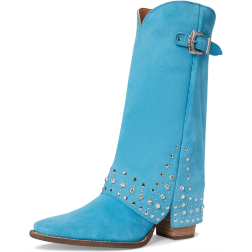 - Sweet with a side of bold. The Dingo Howdy boots bring full-glam energy with head-to-toe rhinestones, a chic cuff detail, and a statement buckle that pulls it all together. These heeled boots are made of a suede upper, cushion comfort foam insole, and polyester lining. They are the kind of boots that don't whisper - they shine. The buckle side closure offers a secure fit. Whether you're dressing up or keeping it casual, these calf-high boots add instant attitude and sparkle.