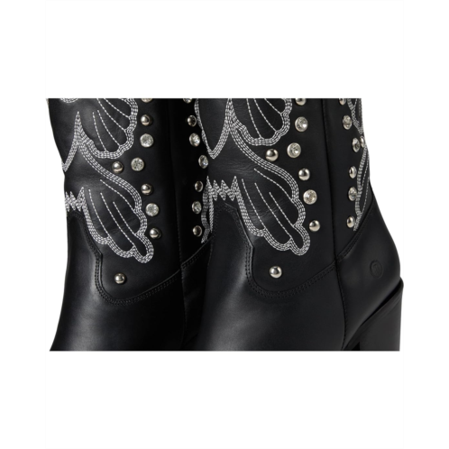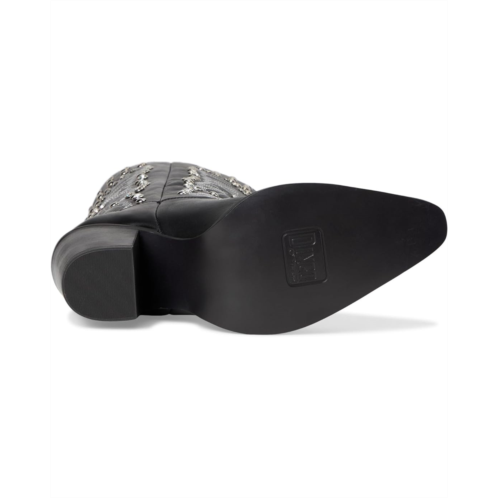 - Where edge meets elegance, the Dingo Diamonds Forever boot turns every stride into a statement. Crafted with a premium leather upper and soft polyester lining, it promises lasting comfort and unmatched flair. The foam insole cushions every step, while the durable rubber outsole keeps you grounded through all adventures. Designed with a sleek snip toe, sturdy block heel, and effortless pull-on style, this knee-high beauty combines rugged charm with runway sparkle. Bold stitching and glimmering rhinestones add that fearless shimmer.